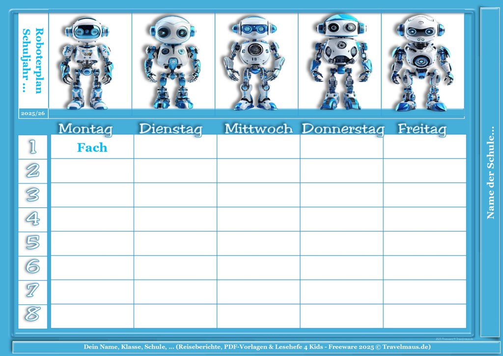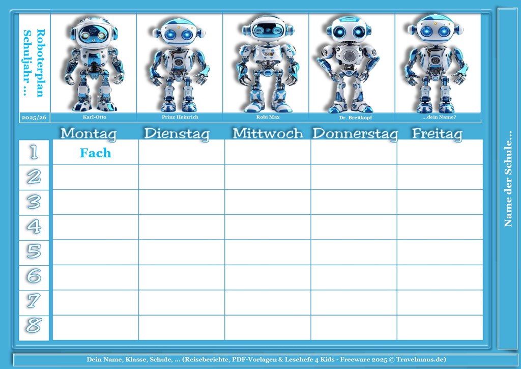Zusätzlich enthält die PDF-Datei zwei (Geburtstags-und Termin-) Tabellen und einen Stundenplan. Ebenfalls am PC auszufüllen! Mit KI-Bildern erstellt!