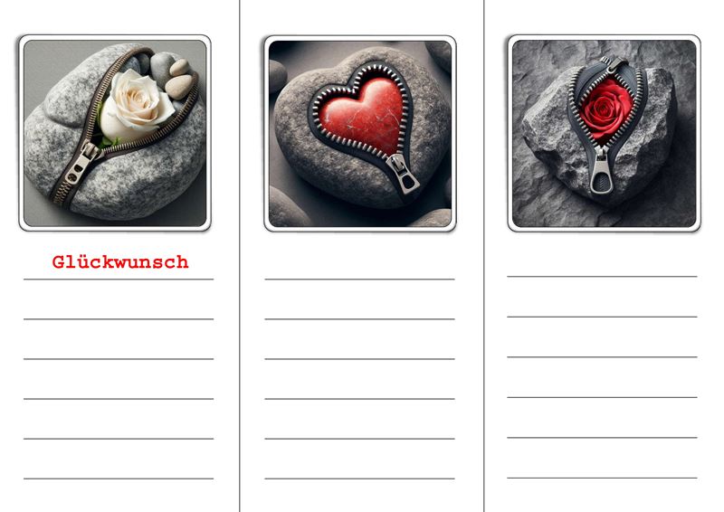 Verschiedene Vorlagen, die mit eigenen Texten am PC ausgefüllt werden können. Wichtig: Druckgröße am Druckertool wählen!