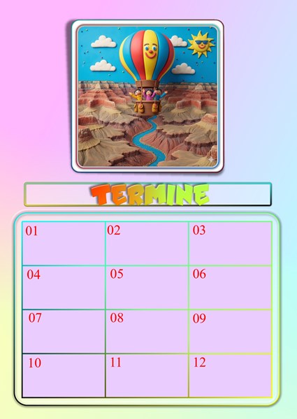 Diesen Kalender (2 Blätter) mit eigenen Texten/Begriffen am PC ergänzen, ausdrucken, zusammenfügen/-kleben und dann auf Magnettafel anbringen. Die einzelnen Button mit Magneten kenntlich machen.